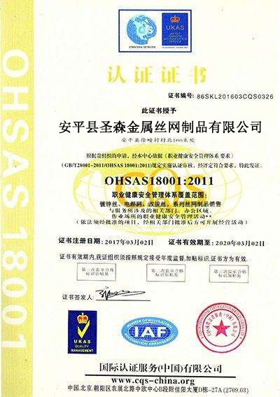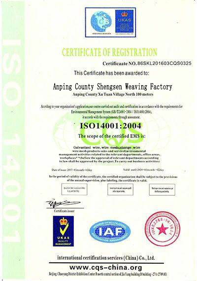• 質量認證證書
